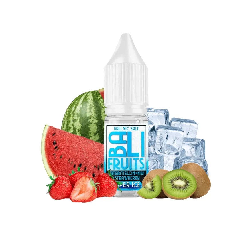 El Bali Watermelon Kiwi Strawberry Super Ice es un e-líquido de nicotina salada (nic salt) de la línea Bali Fruits, fabricado por Kings Crest. Este producto ofrece una explosión tropical de sabores frutales refrescantes, combinando la jugosidad dulce de la sandía (watermelon), el toque ácido y exótico del kiwi, y la dulzura madura de la fresa (strawberry), todo culminado en un intenso efecto mentolado «Super Ice» que proporciona una sensación ultra-fresca y helada en cada inhalación. Es ideal para vapers que buscan un equilibrio perfecto entre dulzor frutal y frescura extrema, con una absorción rápida de nicotina para satisfacer cravings de manera suave y sin irritación en la garganta. Este sabor es parte de la serie «Fruit of the Gods» de Bali Fruits, conocida por sus mezclas inspiradas en frutas tropicales.