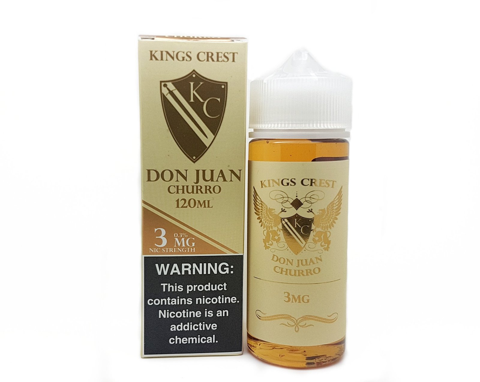 KINGS CREST DON JUAN CHURRO de los creadores del tan afamado Don Juan Reserve nos llega esta versión con sabor a churros con chocolate en formato líquido. Deliciosos churros azucarados, con el toque que le aporta el baño de chocolate que dejará tu paladar extasiado.